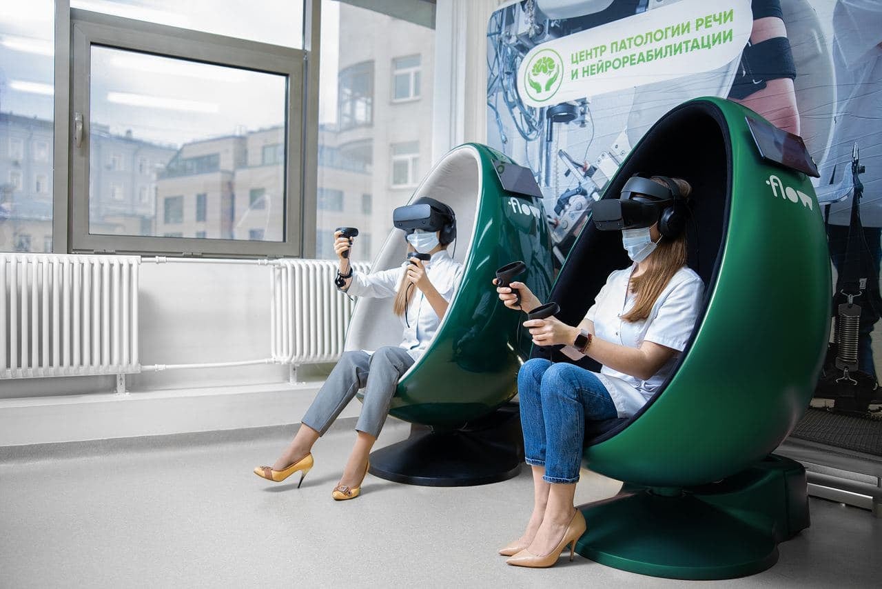 The innovative solution is implemented by means of virtual reality (VR) at the intersection of digital and physical spaces. For relaxation, the phygital capsule FLOW is used. The study involves volunteers from among the clinic's patients undergoing neurorehabilitation. The study was approved by the local Ethics committee of the Center and integrated into the general rehabilitation plan of the clinic.